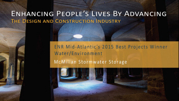 McKissack & McKissack is excited to announce another company milestone achievement as project winner for ENR Mid Atlantic’s 2015 Best Project for Water/Environment for McMillan Stormwater Storage. McKissack was a part of a project team where we served as the engineer of record and provided design and construction management services for converting an underground cell into a temporary stormwater storage basin to alleviate chronic flooding in the Bloomingdale and LeDroit Park neighborhoods in Washington, DC.